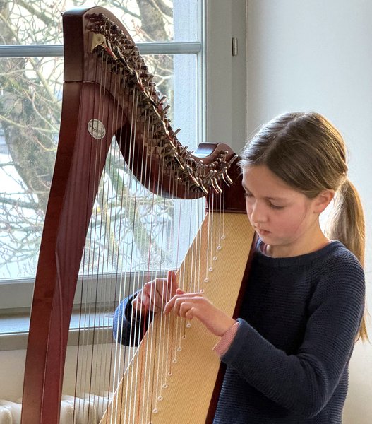 Zu Harfenklängen von Luisa Reik bestaunten die Anwesenden die neuen Fotografien im gesamten Musikschulgebäude vom Fotografen Flo Maucher aus Obergünzburg.