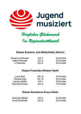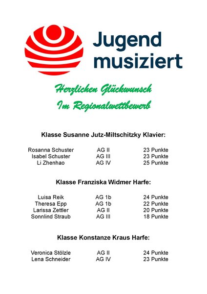 An den beiden Wochenenden vom 24./25. Januar und 31.Januar/1.Februar stellten ingesamt 9 Schülerinnen unserer Musikschule ihr Können beim Regionalwettbewerb Jugend musiziert unter Beweis.